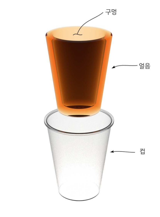 2. 본원 디자인의 물품은 내부에 구멍이 있는 얼음과, 얼음을 감싸는 컵으로 이루어져 상기 얼음 내부에 다른 음료를 넣어서 시원하게 마실 수 있도록 하는 컵에 대한 것임.