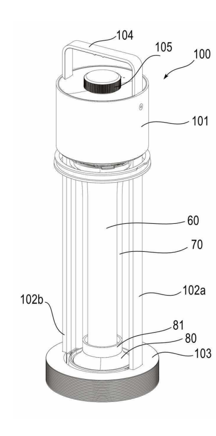 발명의 요약 : 실시예의 다용도 LED 랜턴은, 외형을 형성하는 상부 바디와, 상기 상부 바디 하측으로 연장되는 적어도 하나 이상의 버티컬 바로 이루어진 하부 바디와, 상기 하부 바디 하부를 지지하는 베이스부와, 상기 상부 바디에 결합되는 방열 수단과, 상기 방열 수단 내측으로 일부가 삽입되는 LED 홀더와, 상기 LED 홀더 내측면 또는 중앙부에 구성되는 LED 소자들과, 상하 또는 세로 방향으로 연장되도록 배치되어, 상기 상부 바디와 하부 바디 사이에 구성되는 적어도 하나 이상의 LED 바와, 상기 LED 바를 감싸는 형상으로 이루어지면서 패브릭 소재로 이루어진 패브릭 커버와, 상기 패브릭 커버를 감싸는 형상으로 이루어지면서 반투명 내지는 불투명 재질의 소재로 이루어진 적어도 하나 이상의 확산 커버와, 상기 확산 커버를 감싸는 형상으로 이루어지면서 투명 재질의 소재로 이루어진 투명 커버와, 상기의 LED 소자들과, LED 바의 동작을 사용자가 제어할 수 있도록 하는 조절부를 포함한다.
