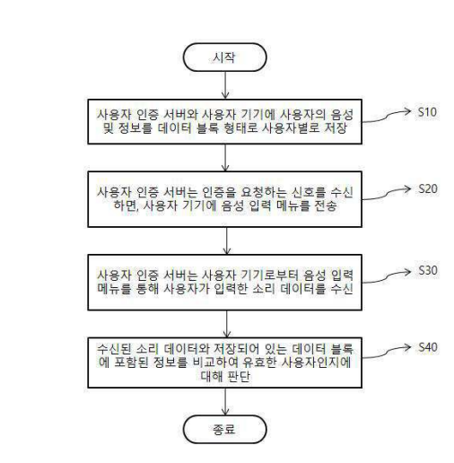 발명의 요약 : 본 발명에 따른 데이터 검증을 통한 사용자 인증 방법은 사용자 인증 서버가 사용자로부터 사용자의 음성이 포함된 음향 데이터와 사용자에 대한 정보를 제공받아 데이터 블록으로 저장하고 동일한 데이터 블록을 사용자 기기에 저장해 놓은 상태에서 사용자의 인증시 이를 비교하는 과정을 수행하기 때문에 사용자 인증의 보안성을 더욱 향상시킬 수 있다.