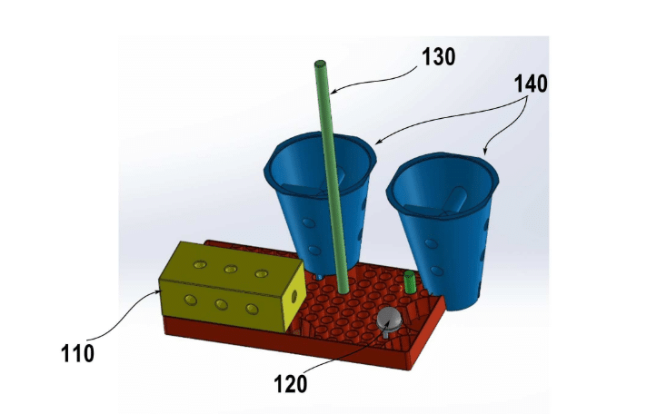 발명의 요약 : 실시예의 다용도 보드는, 직사각 형태의 장방형 형상으로 이루어지는 다용도 보드로서, 상기 다용도 보드의 상부면 네 모서리에 1/4 원형상인 모서리 부채꼴 홀들이 각각 형성되고, 상기 상부면의 장변과 단변들의 각 네 변을 따라 소정 간격을 두고 배치되면서 반원 형상인 에지 반원 홀이 형성되고, 상기 상부면 내에 소정 간격을 두고 배치되면서 원형으로 이루어진 복수개의 중앙 원형 홀이 형성되고, 상기 다용도 보드의 하부면에는, 상기 중앙 원형홀을 통과한 봉을 지지하기 위하여 상기 다용도 보드의 하부면으로부터 돌출형성되는 중앙 원형 리브가 복수개 형성되고, 상기 하부면의 네 모서리에는 소정 높이 돌출되면서 1/4 원형상으로 이루어진 모서리 부채꼴 격벽이 각각 형성되고, 상기 모서리 부채꼴 격벽 내주면에는 기설정된 간격만큼 떨어져서 모서리를 향하여 돌출되는 모서리 걸림 리브가 형성되고, 상기 하부면의 네 모서리에는 상기 모서리 부채꼴 격벽에 의하여 형성되는 모서리 부채꼴 홈이 형성되고, 상기 하부면의 장변에 해당하는 가로변 중앙과, 단변에 해당하는 세로변 중앙 각각에는 반원 형상을 갖는 에지 반원 리브가 돌출 형성되고, 상기 하부면의 네 모서리에는 돌출 형성된 상기 에지 반원 리브에 의하여 형성되는 에지 반원 홈이 형성되는 것을 특징으로 한다.